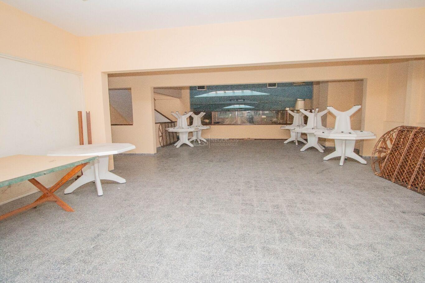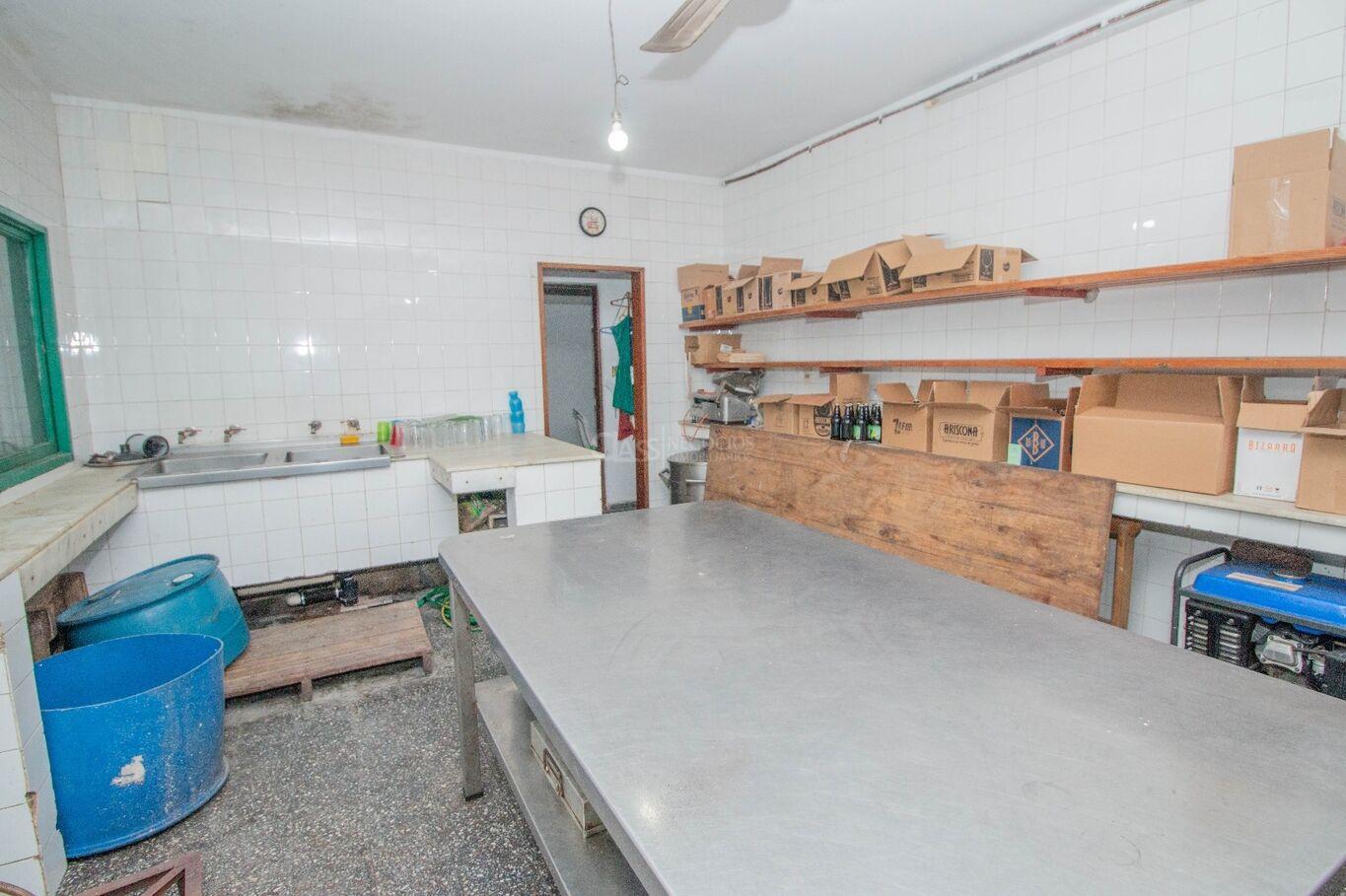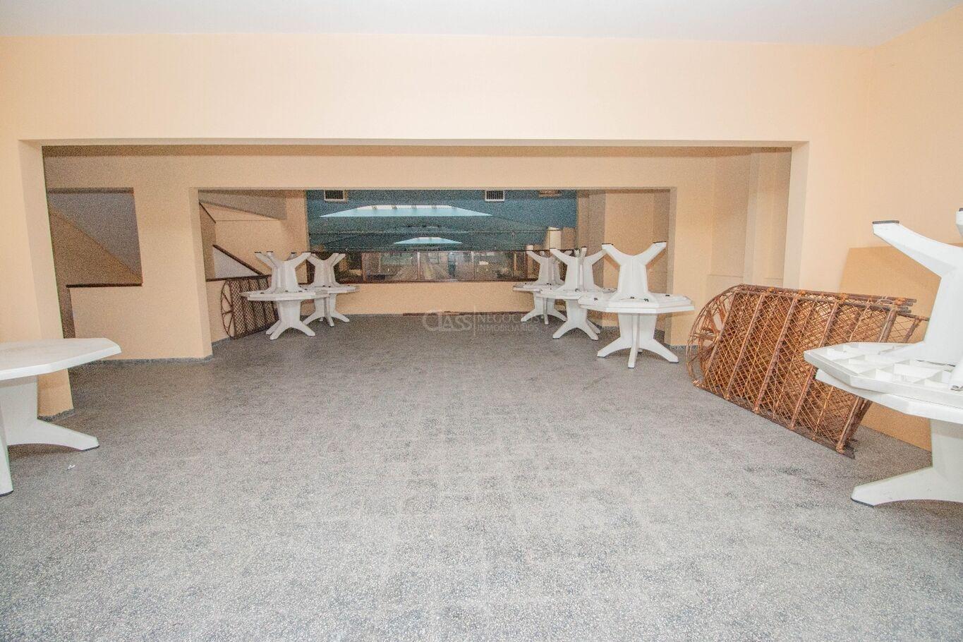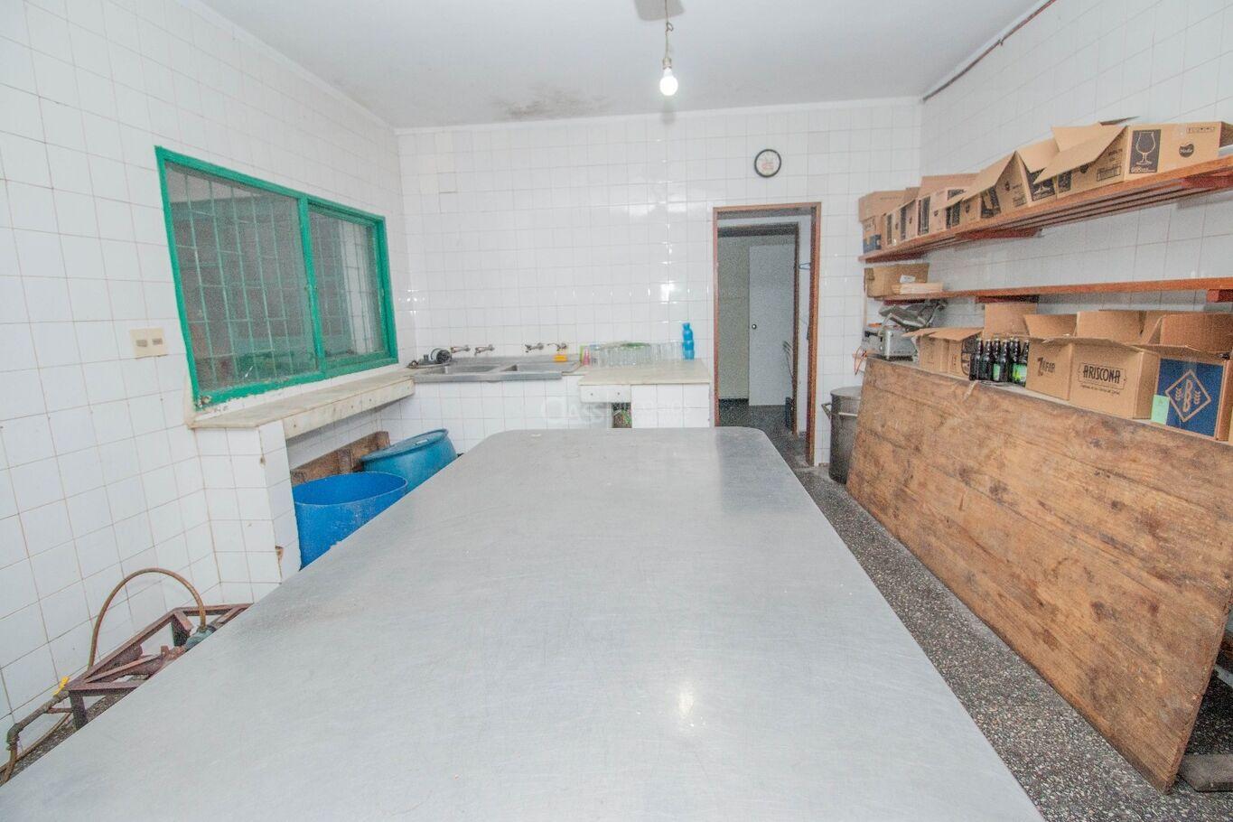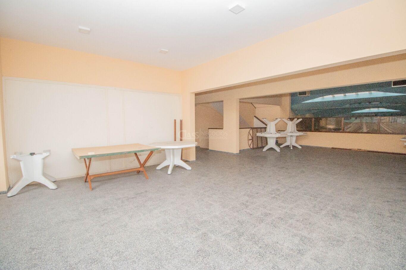 El gran salón tiene pisos de monolítico y un escenario en madera. Detrás del escenario se ubica la cocina, el parrillero, el baño para empleados y un local destinado a almacenamiento y refrigeración.