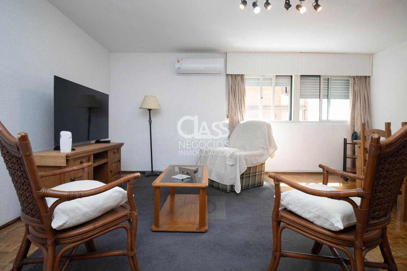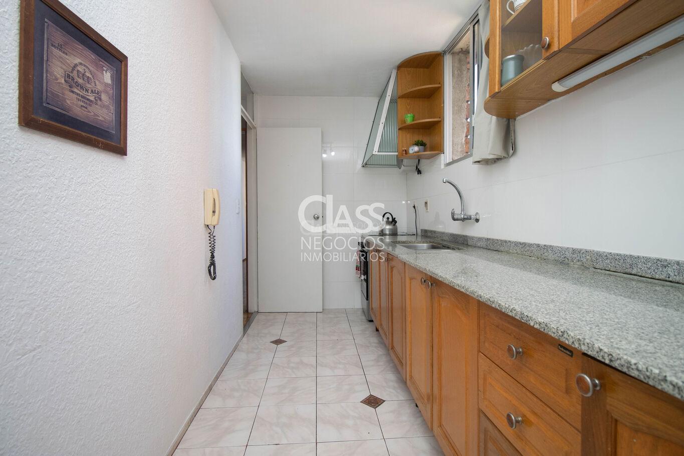 La cocina es definida, se encuentra impecable, con placares bajo mesada y aéreos que ofrecen excelente espacio de guardado. El apartamento tiene dos baños, uno de ellos es social y una terraza actualmente cerrada, que puede utilizarse como escritorio o área de servicio.